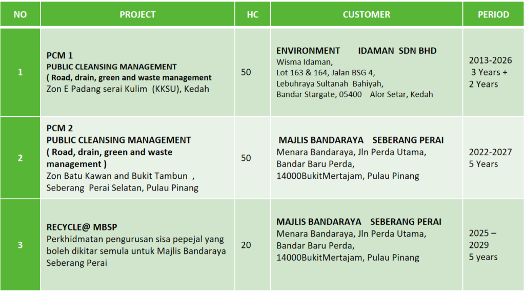 - Penang Island City Council (MBPP) and Seberang Perai City Council (MBSP): We partner with these municipal councils to keep public areas, parks, and streets clean, contributing to the community’s well-being.